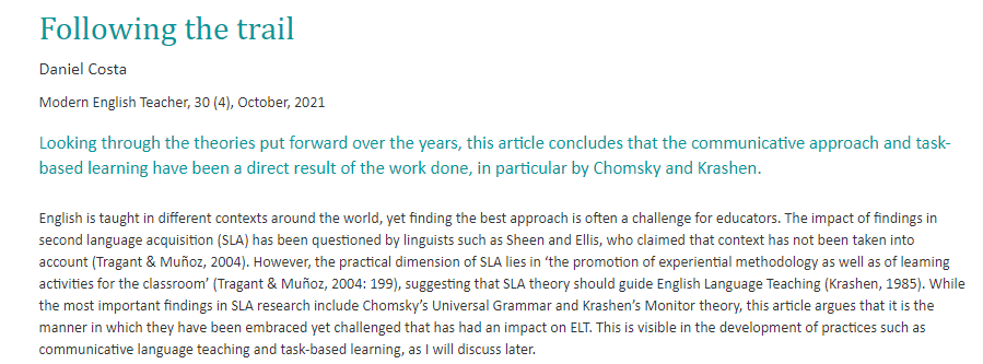 Daniel Costa in the Modern English Teacher takes a look at Communicative Language Teaching and revisits its "trail" and lasting impact on English language teaching.