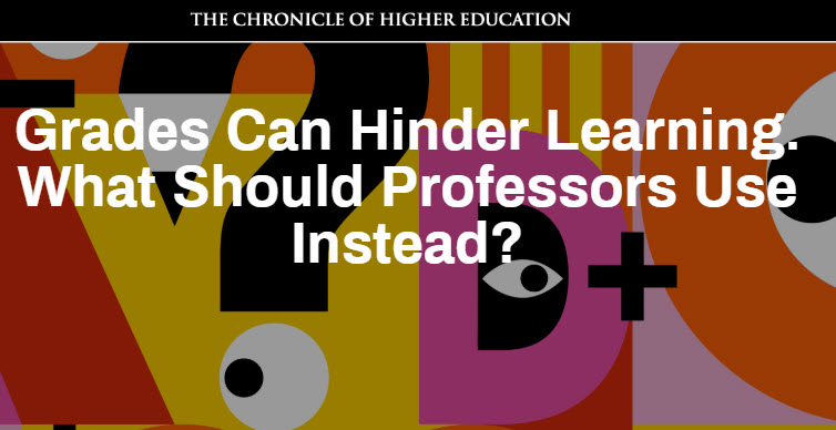This Chronicle article outlines some important research about grading systems and the "harm" they can do toward student learning and growth. Also offers some good alternatives for higher education.