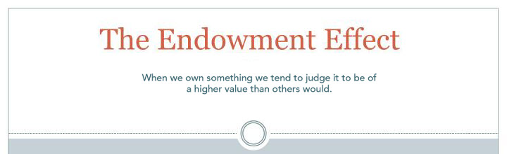 Behaviorial economics coined the term “endowment effect” to represent the rather queer but always true fact that we over value what we own. There is always a big difference between the price an owner assigns their “stuff” than the price someone is willing to pay. This gap is the endowment effect.